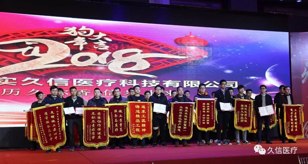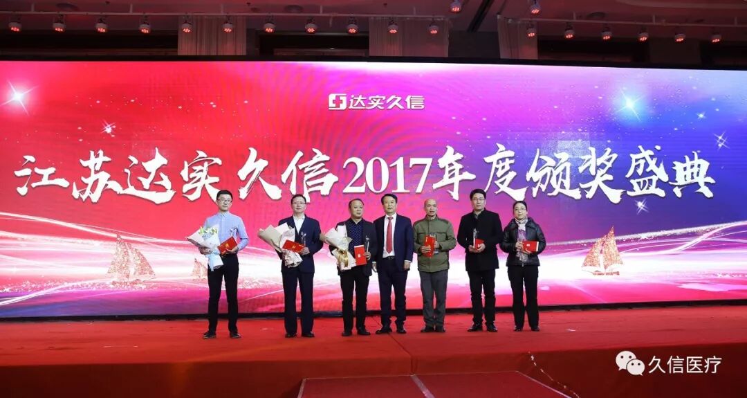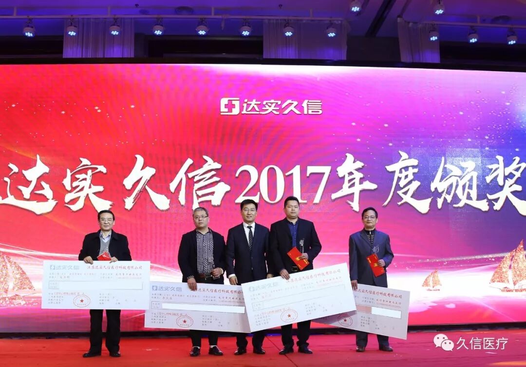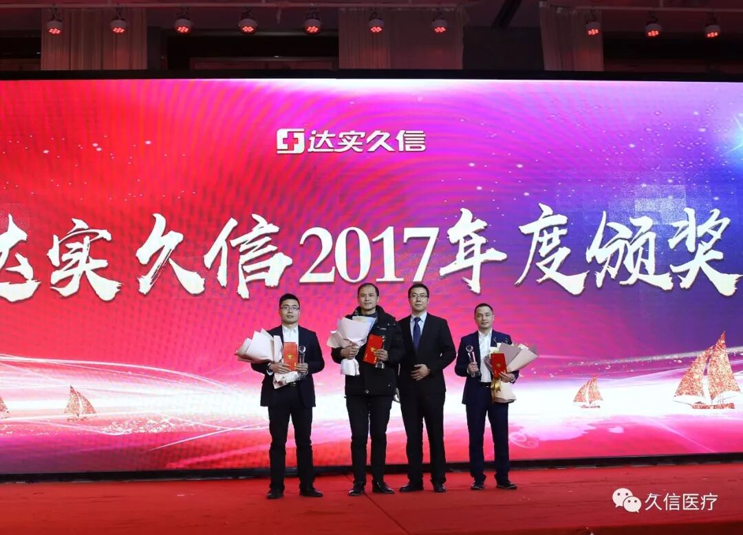 下午,共享2017年度“久信之光”颁奖盛典分为业绩篇、感恩篇和展望篇三个颁奖环节。2017年是不平凡的一年,在这一年公司所取得的成就离不开全体员工的辛勤工作与无私付出。对2017年业绩突出的个人、金牌团队及各部门优秀员工进行了表彰。达实久信董事长黄德强、总裁房志刚和常务副总裁储元明等相关领导分别为获奖者颁发奖杯!现场的掌声络绎不绝,是为获奖者庆祝更是为了达实久信的明天更加辉煌!