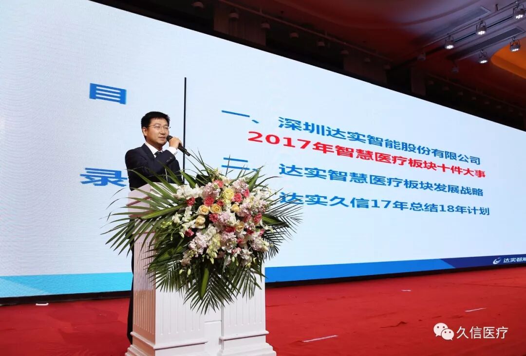 会议中,达实久信董事长黄德强先生对2017年智慧医疗板块十件大事进行回顾总结,并寄语达实久信人2018奋勇拼搏再创新辉煌。
