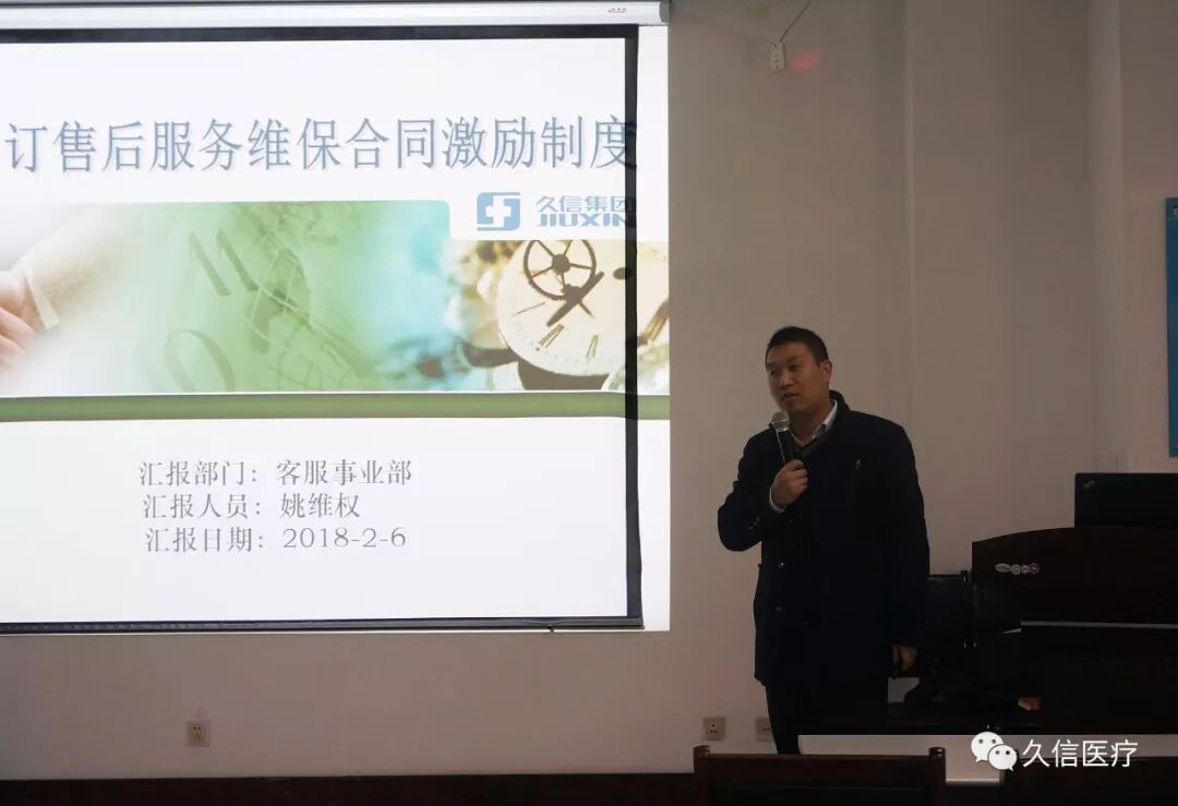 本次会议,各部门领导分别从专业领域对大家进行了专题培训,投标部王波首当其冲,进行了主题为“项目中标原因分析”的交流。 随后营销一中心一分公司总经理赵雷进行了“营销分公司内部制度化管理”的经验分享,并从“营销渠道、资料分析、图纸设计”等方面进行分解。 营销二中心四分公司总经理张国芳进行了成功案例——跨度三年之久的项目分享,从细节讲述该项目从无到有的过程。 营销三中心十分公司总经理邱召龙详细地分享了在实战中所遇到的各种问题,并进行深入分析研究,提出了有效的应对措施,为全体营销带来了满满的干货! 市场部、医疗设备部经理柏皓进行了“市场部2018年部门工作规划及医疗设备和医用气体的产品介绍” ,并对新成立的的医疗设备部的年度目标进行全方位解读。 客服事业部姚维权总经理就“项目售后激励政策及要求”进行详细介绍并与营销精英进行精彩的QA问答。 物流事业部张逸文总经理对“医院厢式物流系统介绍及物流营销政策”进行宣讲,作为达实久信旗下专业从事医院整体物流设计、安装的综合性实体,物流事业部一直致力于成为专业物流整体解决方案提供商。 达实久信数字医疗云峰为大家全面介绍了“医院智慧手术部详情”,分别从智慧手术部、智慧ICU、组合方案推荐等几个方面与参会人员进行深入交流等进行答疑解惑。并列举了达实久信的一些重大项目案例,如:新疆医科大学第一附属医院的准外科数字化解决方案,西安交通大学第一附属医院韩城医院数字化项目等。 工管中心副总裁夏喜明就“工程对接、跟踪及注意事项分析” 与全体营销精英进行分享,并与大家详细介绍了精品工程——上海嘉会国际医院、北京天坛医院相关情况,并表示工管中心2018年有信心有决心有实力完成公司既定目标,做精品工程。 通过一天的集中式分享、学习,营销精英们从心态上彻底得到了改观。加强学习、提升能力、努力打造具有战斗力、凝聚力和执行力的高绩效团队,为促进达实久信在智慧医院建设领域的重要品牌地位,企业更加健康平稳的发展做出贡献。